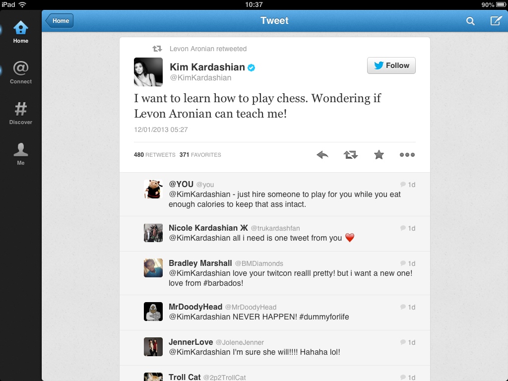 My younger daughter, Sophie, is always watching ‘Meet the Kardashian’s’, so Kim’s tweet naturally caught my eye.