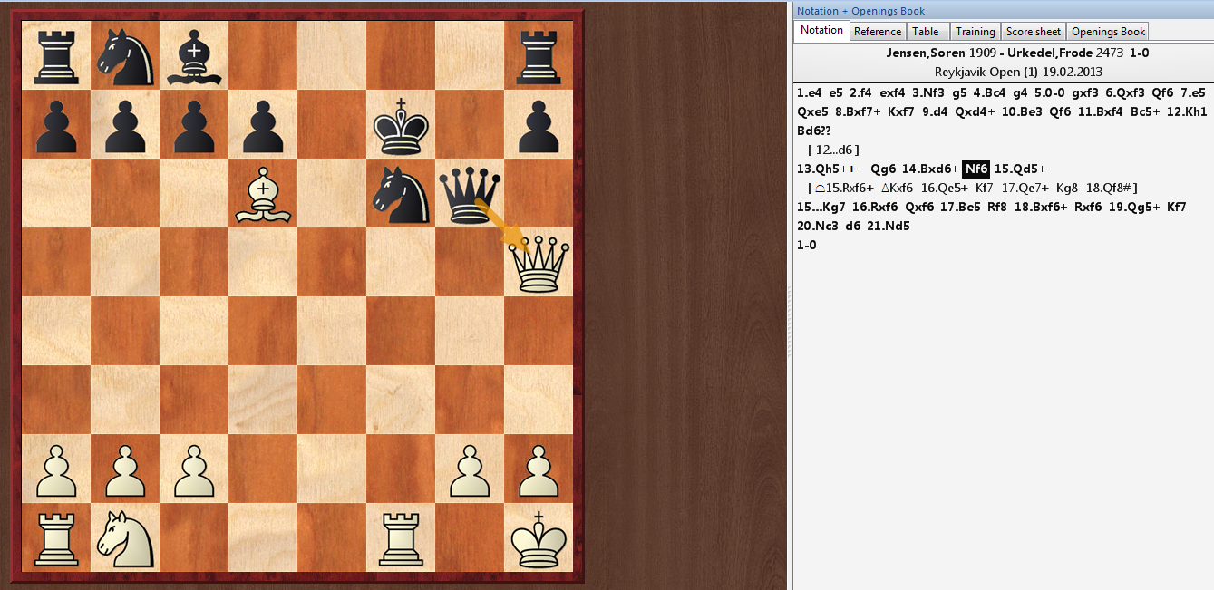 Reykjavik Open, round 1, Muzio Gambit