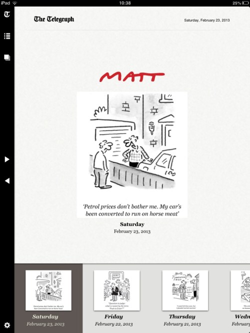 Yesterday the Daily Telegraph celebrated the 25th anniversary of their cartoonist, Matt. Since I have been reading the paper for more than 30 years (2), and since I always look at Matt, I have probably seen the vast majority of them.