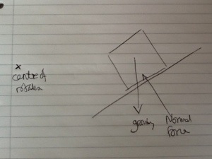Two touching bodies exert a so called normal force on each other: the reasons vary depending on circumstance: gravity being the most common. I am writing this blog on my iPad on the kitchen table. Gravity presses the iPad down onto the table, and the table exerts an upwards force on the iPad, stopping it falling: Newton’s third law.