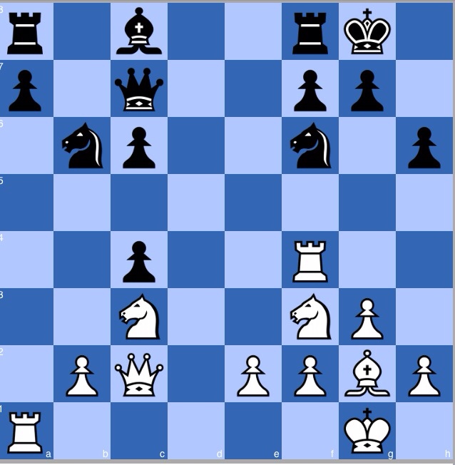 Vassily had permitted Vlad to play 19 Rf6! by his previous moves (17..b5 18 ab Ndb6) and Vlad took the opportunity; I suspect he would have done so anyway, but in addition Vassily had only a very few minutes to reach the 40 move time control. After a few moves we reached the following position.