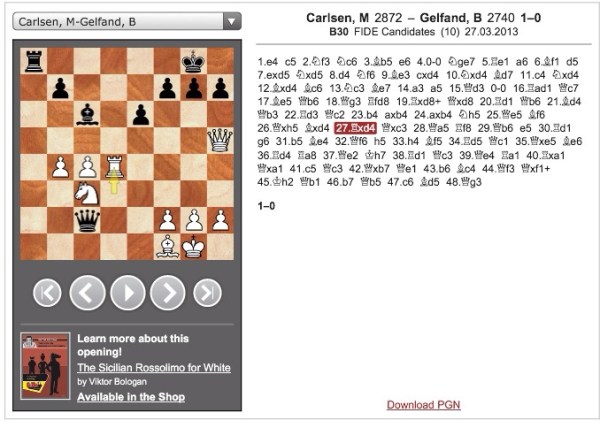 Carlsen-Gelfand, Candidates Tournament