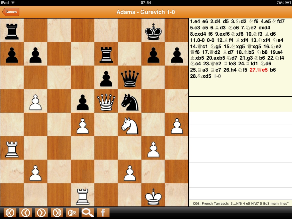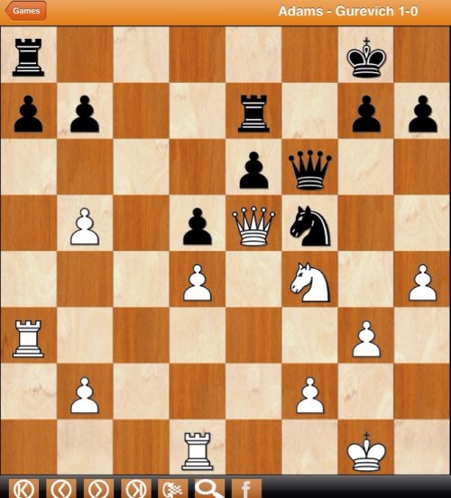 Consternation. How could Mickey Adams have won so quickly after the above position? I checked with the arbiter, who confirmed that it was 1-0 and that the kings weren't misplaced.