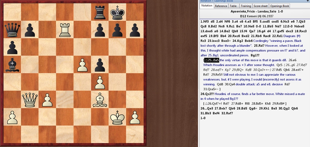 The idea behind the so-called solution is pretty obvious. Black is in a tight position, with his bishop attacked, b7 pawn under pressure, and Q shut out. His only hope is the combined pressure of Q and B on e3, so Rc3 was a fairly straightforward find. But all it is really is a mini-combination, and to me it was fairly obvious that at the end, with bishop on b6, R on d7, white has strong and well coordinated pieces, with an attack on the white squares. What was surprising was that a moment later, black's attempt for activity with Bg1, permits a surprise mate in four: I can't tell whether I would have found it, with such things as clock pressure and match nerves playing their part, but I could well have done: white's action as I say is all white squared. Cordingley's comment that black's Rc3 would have won, but for a later blunder, is incorrect, for both human and silicon reasons.