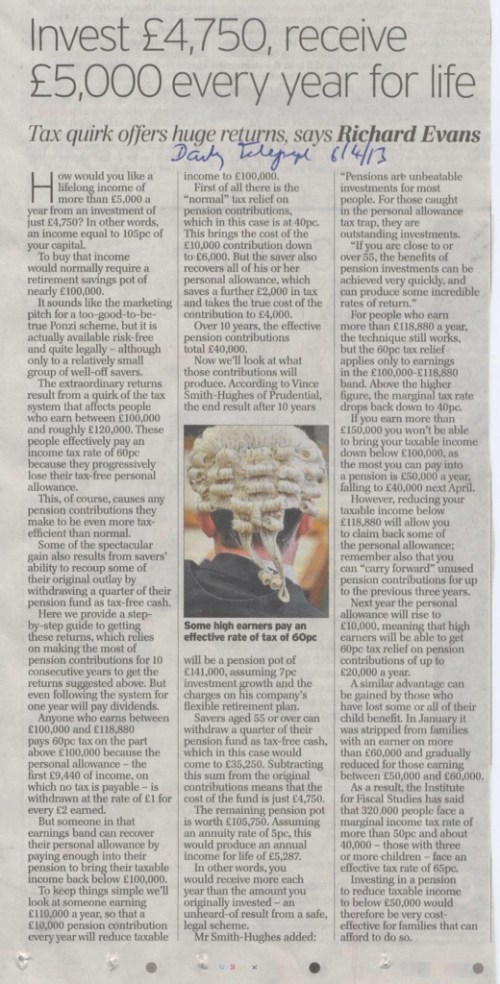 So, on income of £110,000, decide to pay a gross contribution of £10,000, restoring the half of personal allowances that are lost at £10,000 above the threshold.