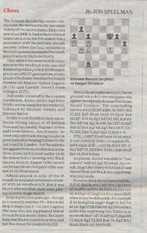 Jon Speelman’s excellent (for which read, his daily column has given me great pleasure over more years than I can remember) column in the Independent today caught my fancy.