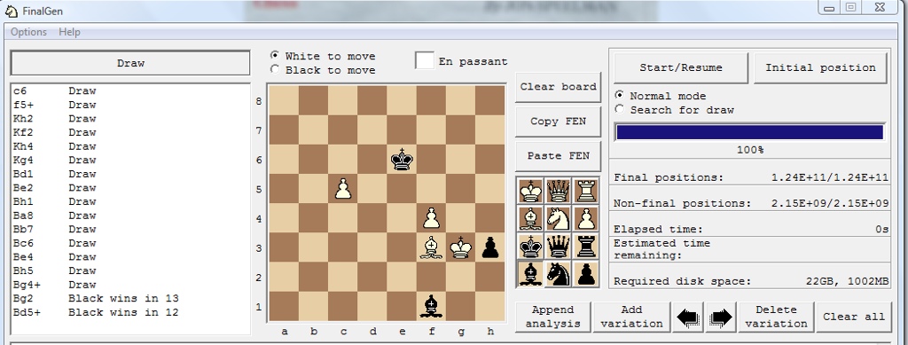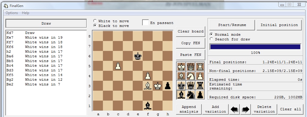 What intrigued me was that only two moves draw, the rest lose. So, I decided to explore the position a bit with Finalgen.