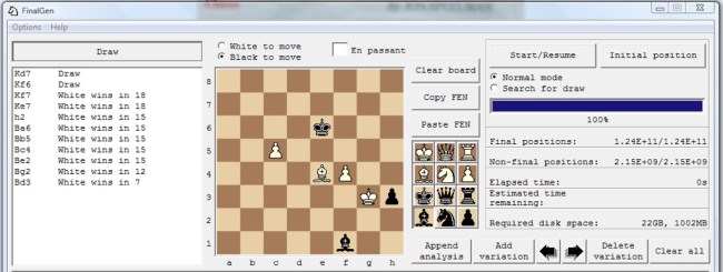 I was also intrigued by Jon’s very last words: I think Black can just hold. I played through the game (on the Chessbase online app on my iPad) and indeed could see why Jon said this. I decided to use this position which had a bit of doubt in it to do my first test of the newly released Finalgen software.