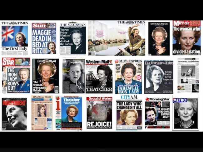 This montage was on Twitter last night. Whatever one might think of her, I think the Socialist Worker's headline is in very poor taste: the Mirror or Morning Star are more appropriate. I can't decide what I think of the Sun's headline: not much, I think.