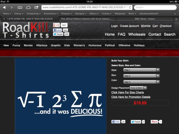 Roadkill T shirts has banner advertising on various sites I visit. (Their products must be aimed at nerds: they clearly target their marketing $ well). Many are funny, some are crude, and I thought this one was clever.