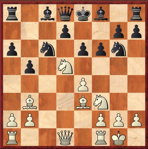Today, he captured the piece, and an exciting game resulted. I didn’t play the best line, missing his queen side castling resource. He too missed the one and only defence; when I later looked at Esserman, I found he gives this defence. But it is a very narrow path indeed: however, on reflection, it is a logical one: black tries to counterattack hitting g2 with the Bb7-Qc6 battery. Prior to Houdini suggesting it, I would never have thought of it, instead, most likely, playing on the black squares, like my opponent did.