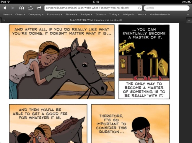 This is an extract from a cartoon http://zenpencils.com/comic/98-alan-watts-what-if-money-was-no-object/