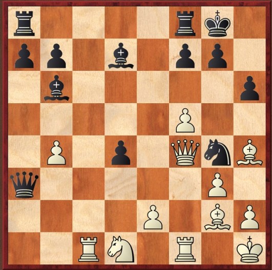 I looked at the position twice: once, a few years ago, when I bought the book, and again now, in 2013, when doing this blog. Interestingly, I choose the same line this year as last time: alas, checking with Houdini, the line I chose 'loses', but black's defence is narrow and not obvious: I think, in fact, in practice there were 'chances for both sides'. My move, was (after sacing the exchange, 1 Qg4 Qc1 2 Bf6 g6) was to bring another piece to the party, 3 Nf2, whereas bringing another piece 3 Bd5 is better.