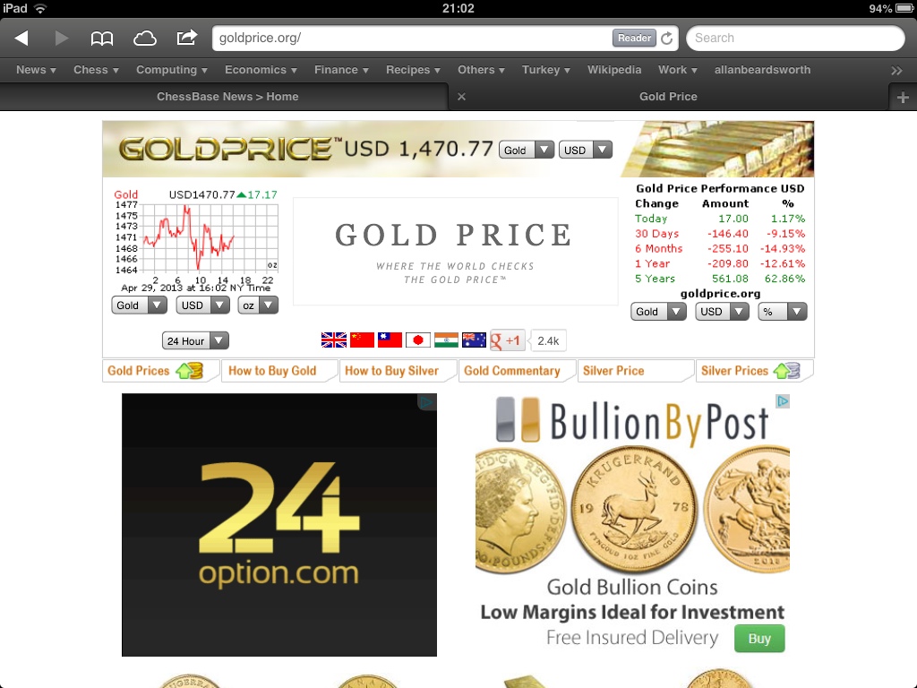 Bathroom scales can lie, especially with my eyesight, but fortunately I have just had my annual medical, so more or less know my weight, and the gold price is now around $1,470/ounce.