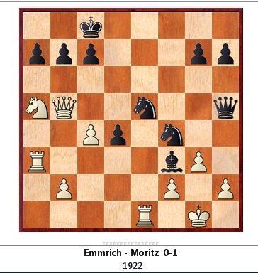 After yesterday's disaster, this was a relief. I solved it instantly: my only surprise was that in the game, black played 1…Bd5, and lost ( I don't know how, the game isn't in Megabase 2012). Perhaps because I knew it was a puzzle, the first move I looked at was 1… Qh2+, and saw immediately this was a mate, without anys variations. 2…Ng4+, 3…Nh3+, 4…Nh2 mate: pretty, but straightforward.