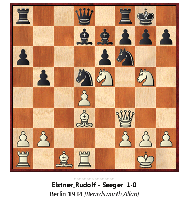 Next I exchanged twice on f7, and then played Bh7: I felt this might be better for white but it is not decisive: the game still goes on. In looking at this, I noticed (and had I followed CJS Purdy' advice to look for jump checks) that the Qf3 also eyed f7: and then the solution became apparent. Quite pretty, really.