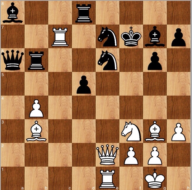 So 3 Rc7 Qa6, and then what? With the Ne6 pinned, the Ne7 triple attacked/ jump attacked, the first move to look at is 4 Ng5+, and when you see that 4… Kf6 5 Qe5 is mate, it is more or less analysis over: just need to check say 4…Ke8, when white can if nothing else exchange queens and take on e6, with an overwhelming advantage.
