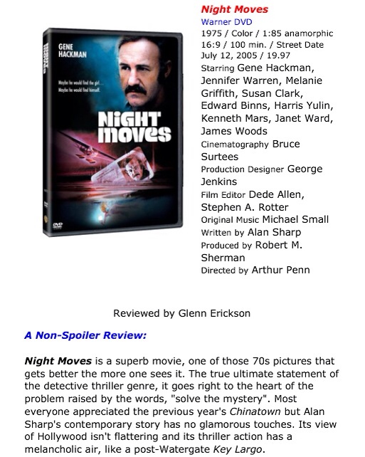 When Jane next suggests that we watch something together, and there is (I) nothing on TV; (II) nothing saved on Sky Planner, I think I might dare to whisper 'shall we watch Gene Hackman's Night Moves?; it's a thriller,I have heard that it is good'.