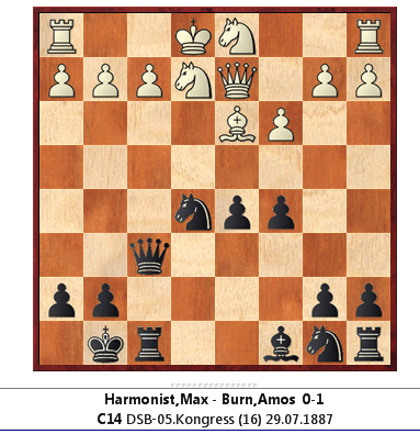 The move I instantly thought of was 1…Qf3! Perhaps the reason that it was instant is that I have seen the position before, I don't know, since from time to time I have read things about Amos Burns; but also 1…Qf3 is not untypical: I am sure that I have seen the motif before.