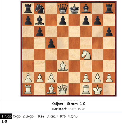 So, time is of the essence, so I soon saw 2 Ng6. Alas, I couldn't get it to work: I found ways to sacrifice too much to get the black queen, but the end result was 0-1, so I kept looking, until I thought of the maxim 'reverse the order' after which 1 Ng6! brought a smile to my face. It was easy to see the game continuation line, even visualising that after 4 Qh5 white's threats include 5 Bg5+, 5 Qf5 mate, and 5 h4!