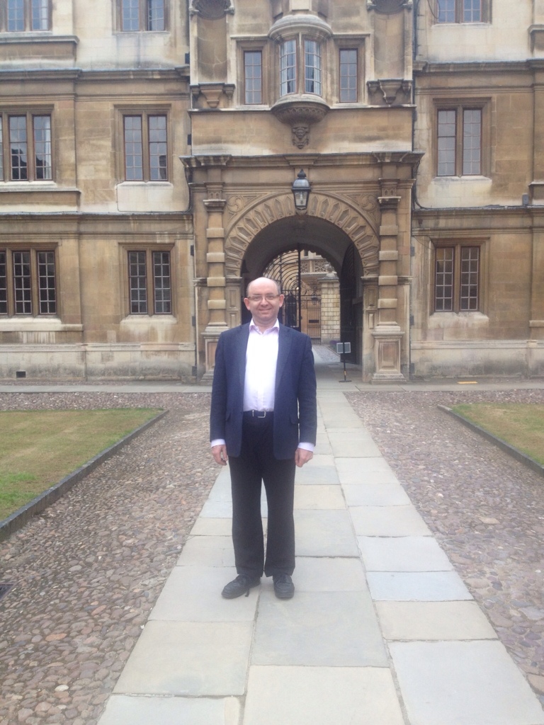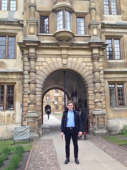 Tom had his first (actually, second) visit to Cambridge a few weeks ago and sent me this photo of him from Old Court, Clare, on my birthday. A nice touch from Tom, for me.