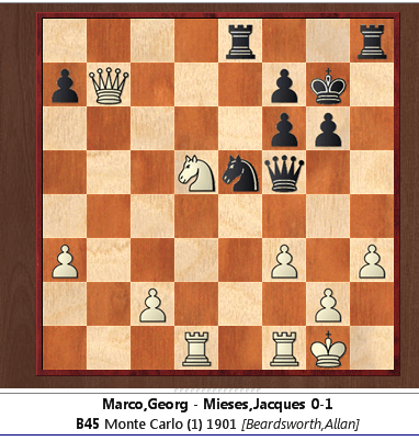 All the above is very well- Cordingley only gives one or two lines after 2…Qg5+, but what about 2 Nc7! ? Smiting the Re8, defending f3, removing the qf3-Nd5-Qb7 pin are all good features. Houdini gives the position as 0.0 but I am not sure if this is a horizon effect mistake- my intuition is that it is not, and that 2 Nc7 might be a significant problem.