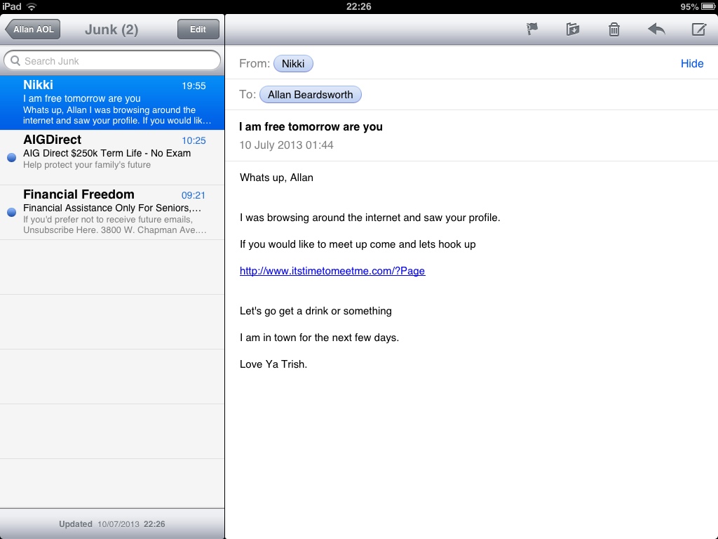 One reason for not contacting her, and there are other reasons (poor punctuation, for instance), is that I wouldn't know what to call her. Nikki or Trish?