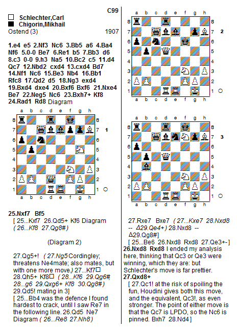 Afterwards, looking at it with Houdini, further depths were found. In addition, since this game was Chigorin playing the Chigorin, I then had a look at the earlier moves of the game, and some additional comments are included in the attached PDF.