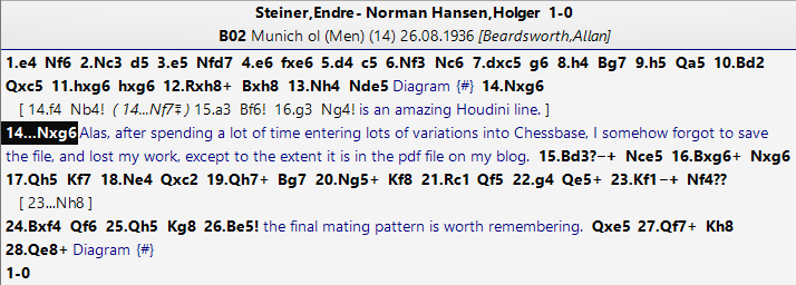 It is hard to criticise when writing in 2013 armed with an engine. The crucial mistake came in the diagram below, where Nh8 holds (and wins).