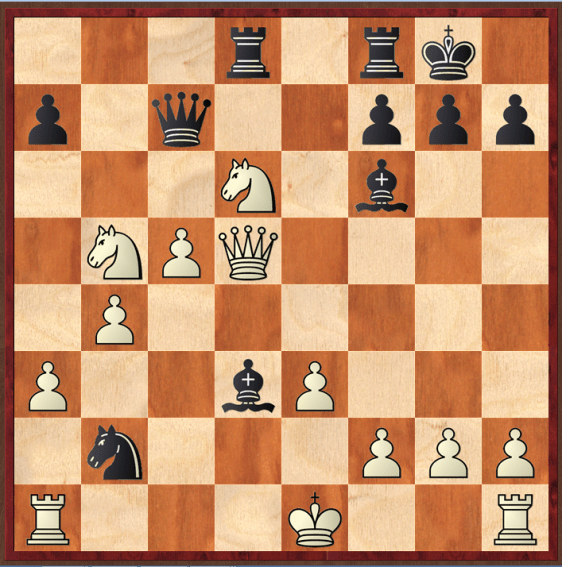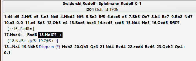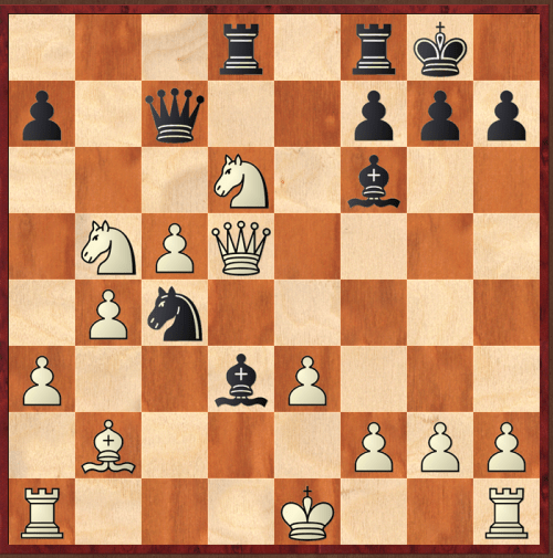 A rest day today. First move I thought of was 1…Bb2?, second, an instant later, 1…Nb2, and it is easy to see that it is game over. Very little to calculate today. Trying to find something interesting to add, I had a look at the full game score. It turns out that white missed a clear (and not hard to spot) win a couple of moves earlier.