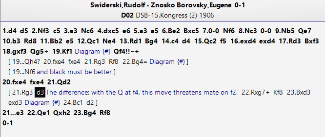 Alas, I looked at 1…Nc3, 1…Nf2, 1…Rf8 and 1…Qh4: giving all my attention to 1…Qh4, but felt it wasn't quite good enough, and then, eventually, turned to the solution. I was really annoyed with myself for not seeing it: 1…Qf4!!. Same idea, hitting f2 and sometimes h2, but with the all important difference that it directly attacks f2 if the knight is captured. I imagine the f3 pawn shielded my view, but I am disappointed.