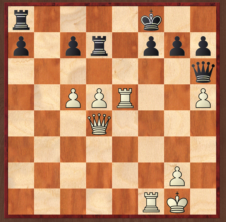 However, 1..Qc6 has to be analysed: in a flash, by comparison to my erroneous variation, I saw 2 Re7!, the idea being to find a way for white to move his queen by giving check, so that he can then take the black queen. So 2…f6 3 Rg7! Rd6 4 Rg8+! came to me pretty quickly, since the desperado rook can't be taken, and, very nicely, the end of the combination is that the LPDO Ra8 falls off.