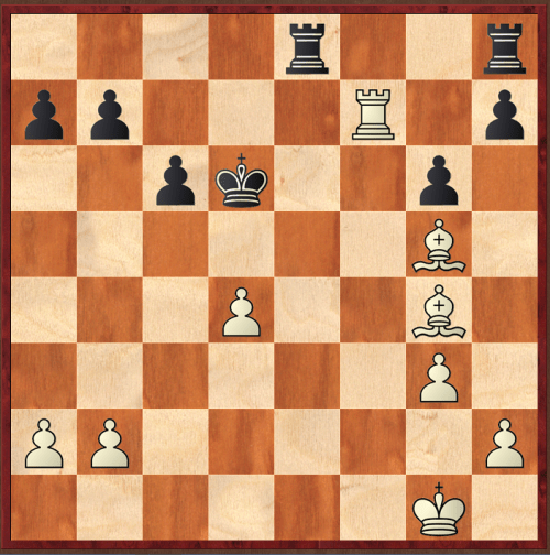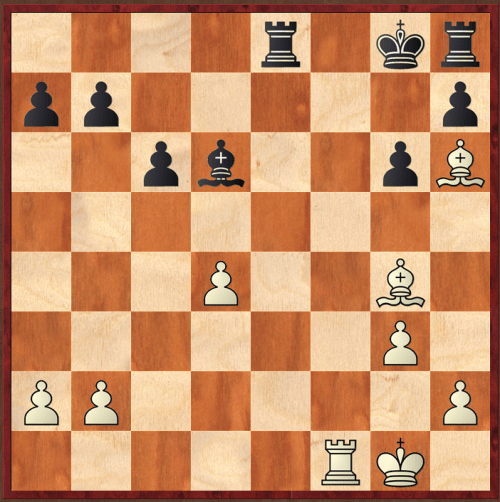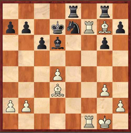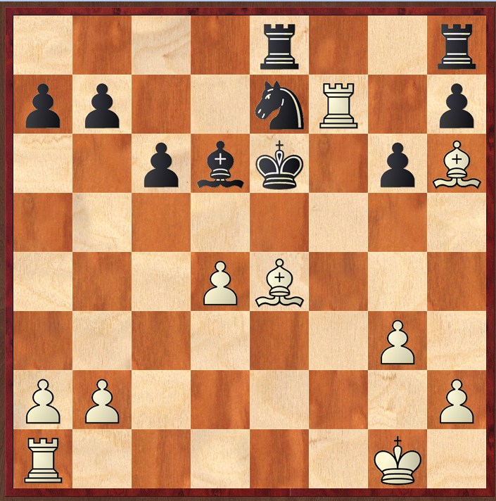 However, Chigorin improved, creating luft for his king by 3…Bf4!, a move I hadn't seen, resulting in this position after the bishop is captured and white has checked the king.