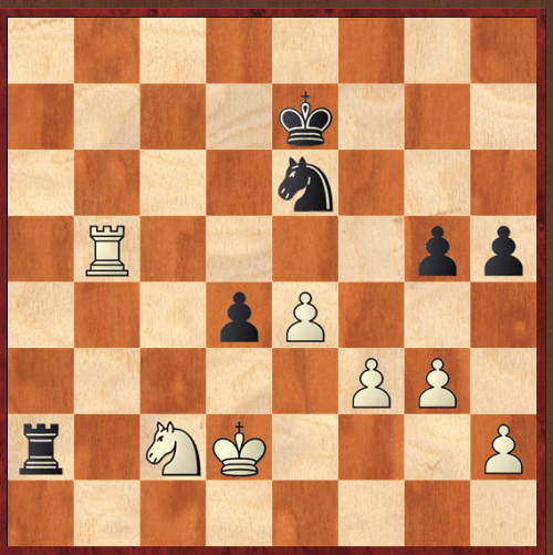 Fairly obvious today: 1…d3!! is a natural biff, and has to be looked at. If 2 Kd3, then 2…Rc2 3 Kc2 Nc5+ and if white plays Rb7+, then Nc5+ is a different fork.