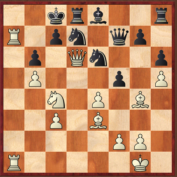 Not too hard, but not easy either, since there are several lines to calculate. I was torn between 1 Nd6+! And 1 Qd6!, and chose the flashier, but I felt they were equivalent! and they were. In the game, white chose the flashier, but then missed a hard to see mate in 2, instead playing the obvious mate in 3. Of course, Houdini, not I, find the mate in 2.