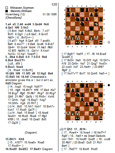 Several moves here lose for black, but the 'obvious' exchange sac 3…Re4! holds the balance. Once my time was up, I looked at the solution, and found that Steinitz played 3…f6? losing: Cordingley gives 3…Re4! as better, so he too knew the problem was cooked. Disappointing.
