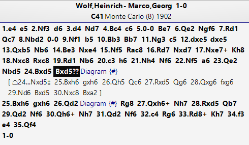 A gentle exercise today- or at least not too taxing. The weakness at g7 and the kingside generally is apparent, as is the Bd5 which ties the Nf6 to its defence. Following Purdy's maxim to examine all biffs, 1 Bh6! has to be examined, and after 1…gh the biff 2 Qd2! also needs to be looked at- and is quickly seen to be decisive. Black either gets mated or his Bd5 drops off.