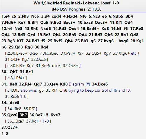 Purdy's examine all biffs mantra means that 1 Be6! has to be looked at. The Pd7 is tied to defending the Nc6, which drops off if the B is taken, so 1…Re8 2 Rf7 Qf7 3 Bf7 Re4 4 Re4 is all that really needs to be calculated- back rank mate.