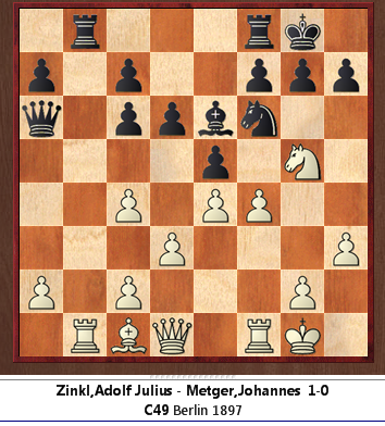 Black's queen is offside, and the solution 'has to be' 1 fe, with only two lines to consider. Firstly, 1…Rb1, when after 2 ef all that white has gambled is rook for knight and pawn, and any aggressively minded player is bound to think that a worthwhile loss for the prospects of attack: and my analysis shows that white is probably winning, though both sides made mistakes in the actual game.