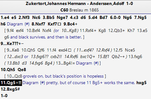 In fact, Anderssen played 2…Ke7?? and after 3 Qh5 Qe8?? (Black is lost, but this loses in two ways) white played 4 Qg5+! which is pretty, but not too hard, especially since 4 Bg5+! also mates in 2.