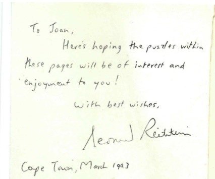 I don't recall how I got the first- I must have bought it in a second hand stall, but Have two puzzle books of positions from South African game, so the next series will be puzzles from Leonard Reinstein's Test your chess!. Having got the first volume, I wrote to Leonard, and he sent me a copy of his second of the two puzzle books: so that will probably be the next one to be blogged about.