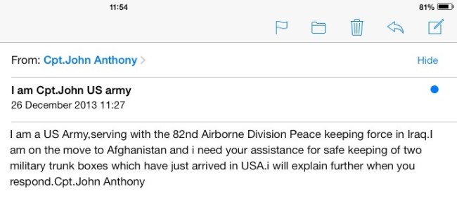 hahaha …I get these kind of emails every now and then. Usually, from a “Nigerian prince”. I have always written back out of curiosity.