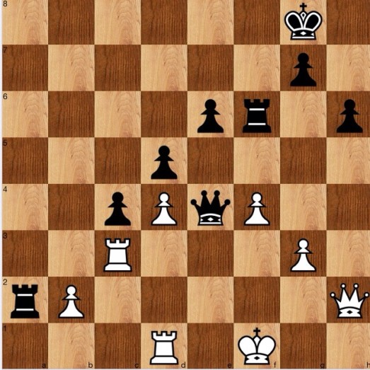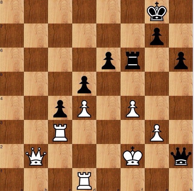 A common trick, often seen in rook endings, wins the game here. 1…Rb2! with the idea that 2 Qb2 Qh1+ 3 Kf2 Qh2+ skewers the king and LPDO queen.