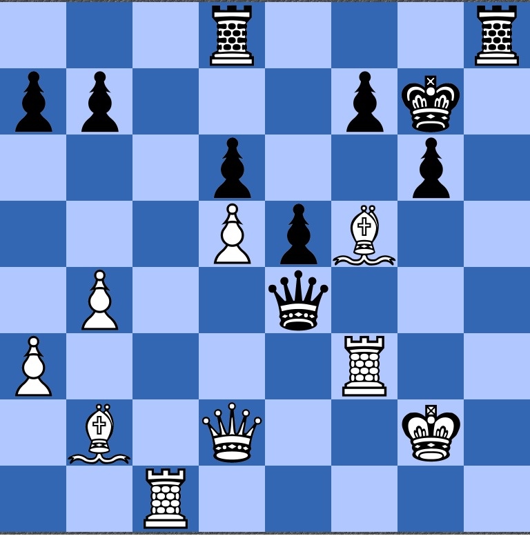 This is another crucial position. In writing up this blog, I have noticed, funnily, that to get here, Bob had to sacrifice a second piece 29…Bh3+! to get to this position: so by the method of comparison, my comments above about 24…gh become even more sensible: 24…gh stokes the fire in an arguably better way, getting the king to f3. I am speculating of course: concrete analysis is needed.