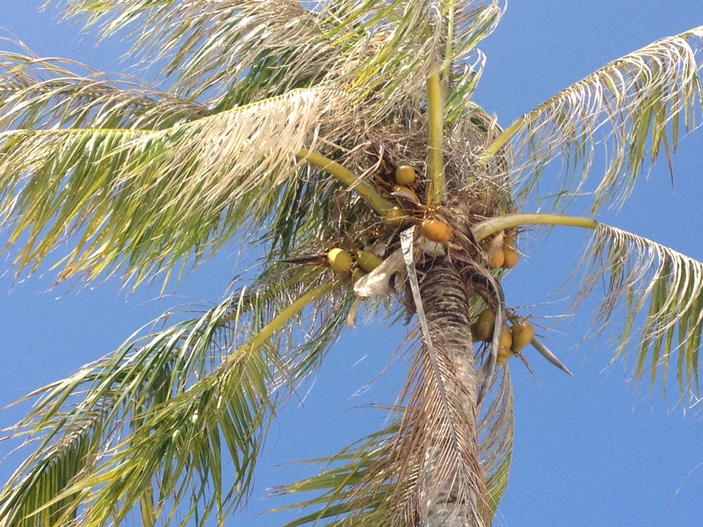 Each day, during our recent holiday in Maafushivaru, Maldives, we had to walk past or under several such trees. And one such bend, coconut corner, there was a 6m tree which shed four coconuts during our stay: once when we were walking past, landing in the sandy pathway with a distinctly firm thud.