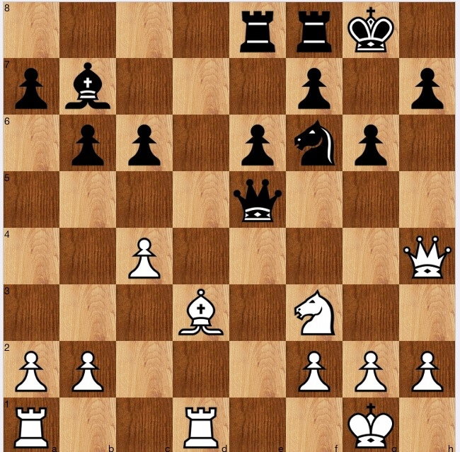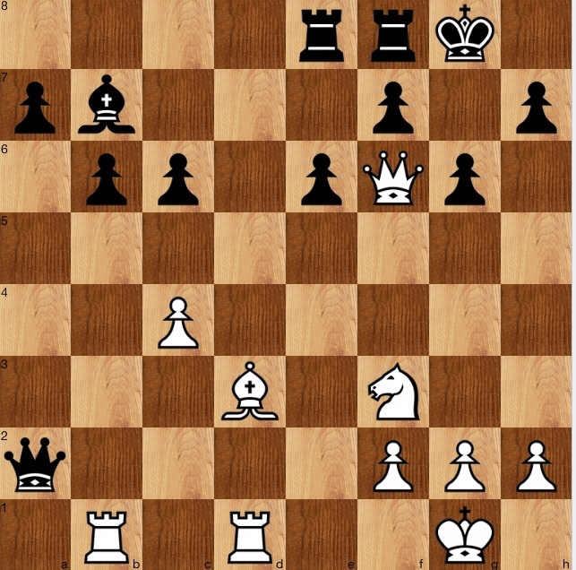 This was for me, a toughie. I saw it in Chess Today (issue 4,801). I would say that three quarters of the Test Yourself! puzzles in Chess Today I solve more or less instantly; half of the rest, after the standard English unit of time (the time it takes to make a cup of tea); some of the remainder I think I have solved, but then the solution proves I have made a total error, or missed a nicer win; and the balance are fiendish. This one took a whole dog walk to solve.