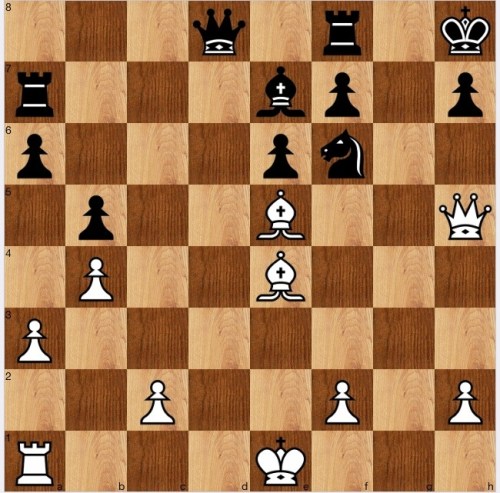 If instead 1…Kg7 then 2 Qg4+ Kh8[] 3 Qh5 (oddly, Stockfish 'prefers' Qh4, though only to the extent of one being +33, one +110: maybe my 'human' move, of bringing the queen closer to the king, is indeed 'weaker': why out the queen in a square that it can be taken (albeit there is a pin) and also on h4, the queen adds pressure to the Nf6) with the pretty point (which I missed at first, trying instead Qg5+/Qh6) of 3…Kg7 4 Qh7 mate.