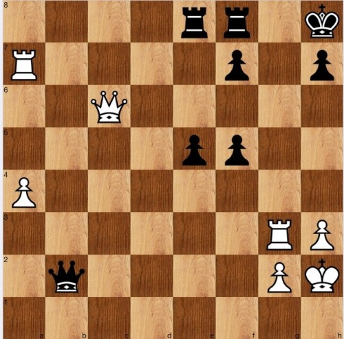 A tougher one, today. Reitstein says that black was confident he was winning the above adjourned position, but white's sealed move was irrefutable. I mention this partly because, were it to be a game rather than a puzzle, I might have played a bland move such as a5, rather than looking for a killer blow: especially because the only winning move is a 'little' move.