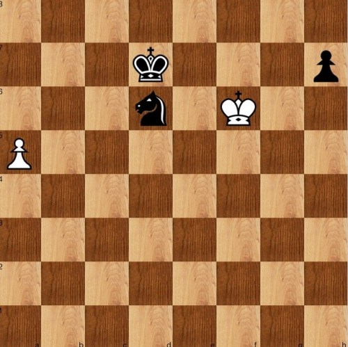 Reitstein says there is only one move by black that wins, but that isn't the case. The move he was referring to was 1…Nf7! which means the king can never approach the h pawn, so that black can then gather the a pawn and then bring his king over. However, 1…Kc6 also works, since if 2 Kg7 h5! by passes the king anyway, and if 2 Kg5 then Nf7 blocks again.