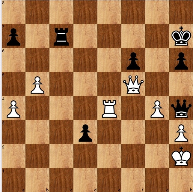 After 2 Qf4, black has to draw by 2…Rc2+ 3 Kg1[] Rc1+! with perpetual check, since 4 Qc1 Qg3+ is also perpetual, one aspect being the Re4 is LPDO: so if white tries to escape with his king to the queen side, he risks being worse.
